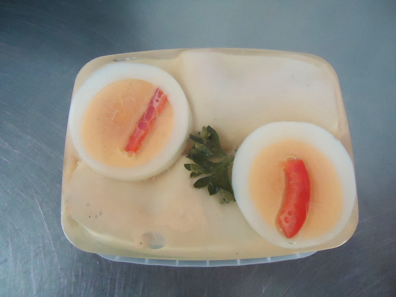 Složení: bramborový salát, vejce vařené, aspik, sýr eidam, petržel nať, paprika červená čerstvá