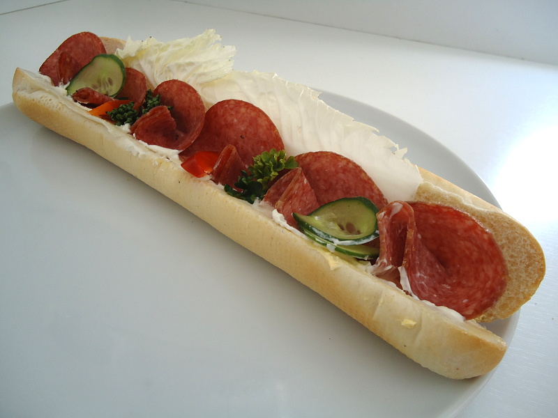 Složení: bageta, herkules, okurka salátová, paprika červená čerstvá, čínské zelí, rostlinný tuk, přeliv