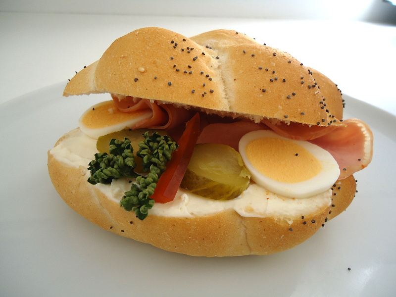 Složení: houska, šunka, čínské zelí, rostlinný tuk, přeliv,