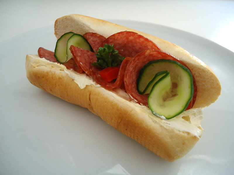 Složení: bageta, herkules, okurka salátová, paprika červená čerstvá, čínské zelí, rostlinný tuk, přeliv