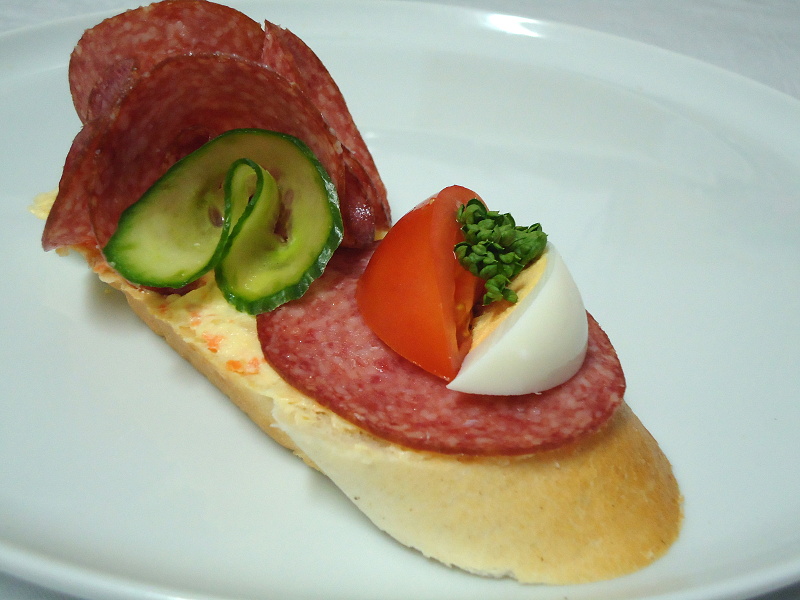 Složení: veka, salát výrobní, herkules, vejce vařené, rajče, okurka salátová, petržel nať